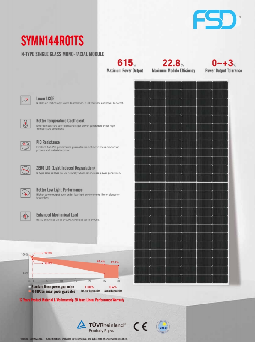 N-TOPCon technology lower degradation,30 years life and lower BOS cost