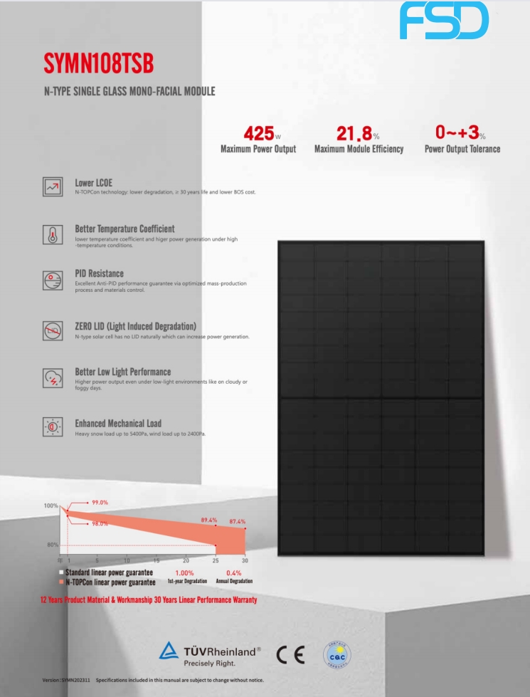 N-TOPCon technology lower degradation,30 years life and lower BOS cost
